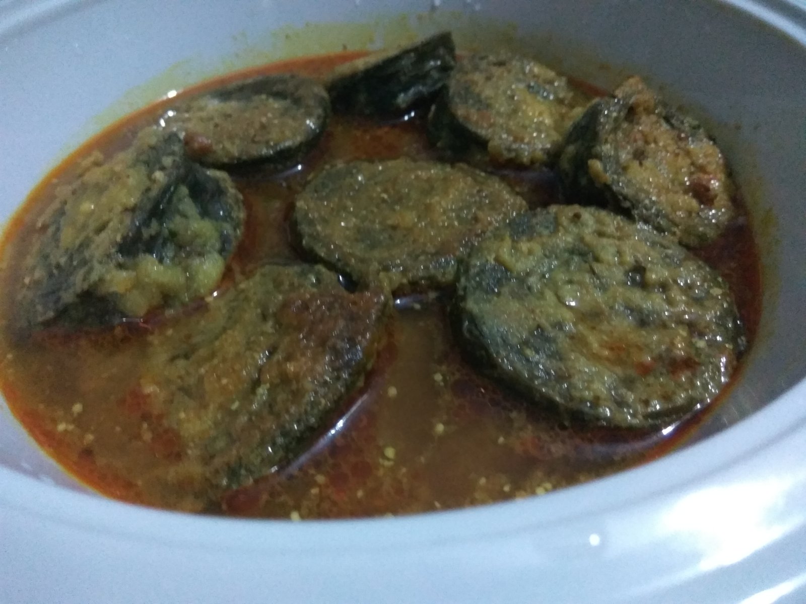 Taro Leaves are coated with black dal paste and cut into pieces.